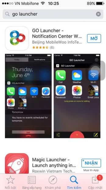 Đầu tiên các bạn tải về ứng dụng Go Launcher trên AppStore.
