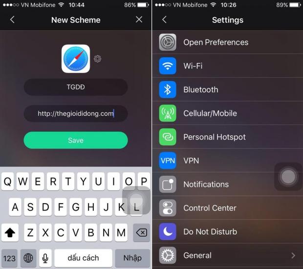 Ngoài ra, bạn cũng có thể thêm một trang web bất kì với trình duyệt Safari, hoặc tạo shortcut để truy cập nhanh vào các cài đặt vô cùng tiện lợi.