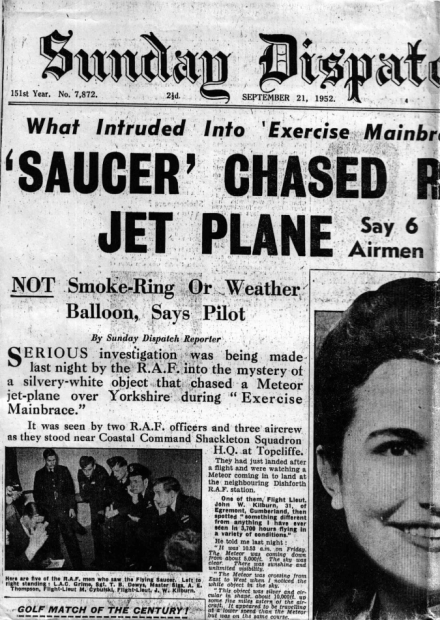 Một số bài báo loan tin về vụ chứng kiến UFO tập thể trong cuộc tập trận chung của NATO vào năm 1952: