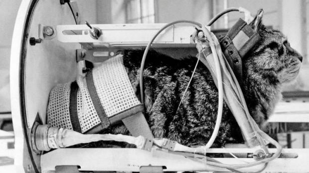 Bức ảnh con mèo mô phỏng hình ảnh của Félicette trước khi chuẩn bị bay vào không gian được chụp vào tháng 2/1964. (Ảnh: Fox News).