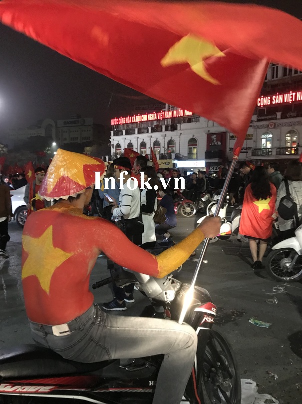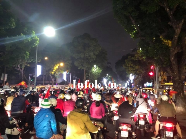 Màu đỏ xuất hiện ở khắp các con phố. Người hâm mộ hô vang khẩu hiệu 'Việt Nam vô địch' , và hát vang bài hát 'Như có Bác Hồ trong ngày vui đại thắng'.