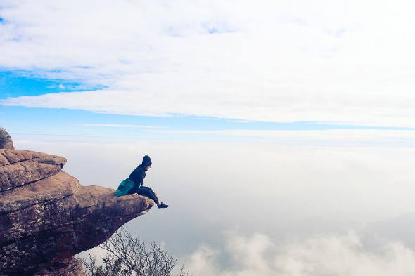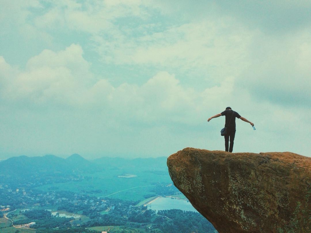 Chinh phục ngọn núi này không phải là điều dể dàng, cần phải có tinh thần thép, yêu thích phiêu lưu & khám phá những điều mới mẻ. Đứng trên mỏm đá này, bạn sẽ thấy hết toàn bộ cảnh đẹp mây trời gió lộng, 1 khung cảnh hữu tình với núi non. Tuy nhiên, phía dưới mỏm núi địa hình khá hiểm trở, nên dù không cưỡng lại được sức hấp dẫn của nó thì các bạn cũng nên nhớ tuyệt đối không được đu bám hay quá mạo hiểm để chụp hình nhé. Nơi đẹp nhất cũng là nơi nguy hiểm nhất, nên đừng bao giờ đánh đổi sự an toàn chỉ vì những bức ảnh.