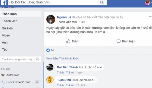 Vì vậy, với rất nhiều người có nhu cầu chơi Tết theo lộ trình cố định trong ngày thì đặt xe qua mạng là phương án được cho là tối ưu. Chỉ cần tham gia vào các hội chuyên về chạy xe dịch vụ như “Cộng đồng Uber & Grab Việt nam”, “Hội Đối Tác Uber, Grab, Vivu”, “hội taxi đi tỉnh giá rẻ”,…trên mạng xã hội facebook, người có nhu cầu về xe có thể nhanh chóng đặt được xe ưng ý.
