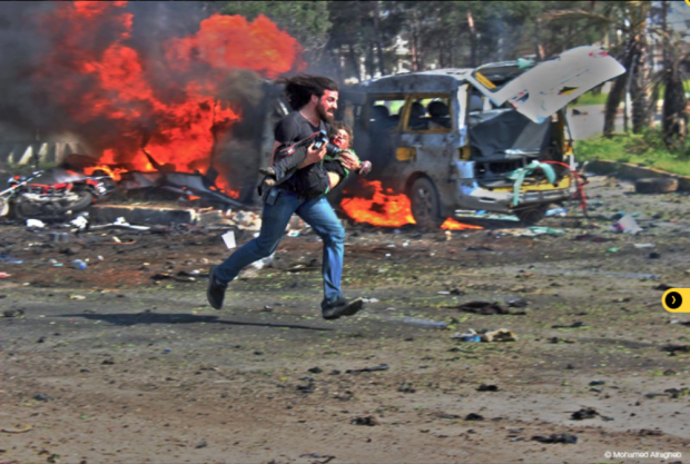Sự kiện diễn ra trong bức ảnh vào 4/2017 tại khu phố Rashideen ở Aleppo. Khi cuộc thoả thuận của người dân về tiến trình hoà bình đang diễn ra thì một vụ nổ lớn xảy ra. Phóng viên Habak đã giúp những người bị thương do vu nổ bom đó. Trong bức hình là Habak đang chạy ra khỏi một chiếc xe nổ tung, trên tay là một em bé bị thương nặng, tron gkhi tay vẫn giữ cái máy ảnh của mình.