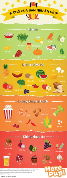 Infographic sau đây sẽ tổng hợp cho chúng ta biết một số loại thực phẩm mà chó của bạn được và không được ăn, mời các bạn theo dõi!