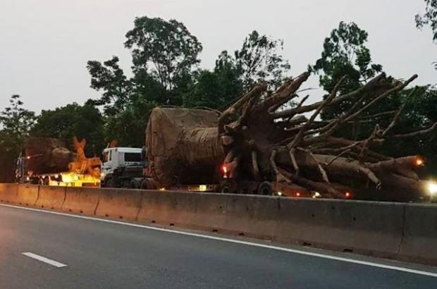 3 xe trên mang biển kiểm soát tỉnh Quảng Bình chở cây cổ thụ khổng lồ lưu thông trên quốc lộ 1 theo hướng Nam - Bắc qua địa phận xã Lộc Điền (huyện Phú Lộc) được CSGT phát hiện tối 30/3.