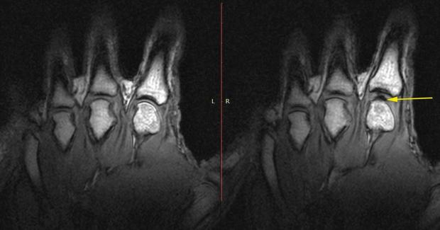 Tuy nhiên đến năm 2015, Greg Kawchuk đến từ Đại học Alberta và các cộng sự của ông đã dùng máy quét MRI để ghi lại xem những gì đã xảy ra bên trong ngón tay của các tình nguyện viên có thói quen hay bẻ đốt ngón tay. Kết quả là những gì bạn có thể nhìn thấy trong hình. Với những gì quan sát được, nhóm chuyên gia lúc bấy giờ kết luận chính sự thay đổi hình dạng của những bóng khí vốn đã tồn tại từ trước đã sản sinh áp suất, từ đó tạo nên âm thanh. Điều mà họ vẫn còn băn khoăn là không biết liệu áp suất đó có đủ lớn để tạo ra vết nứt nào hay không.