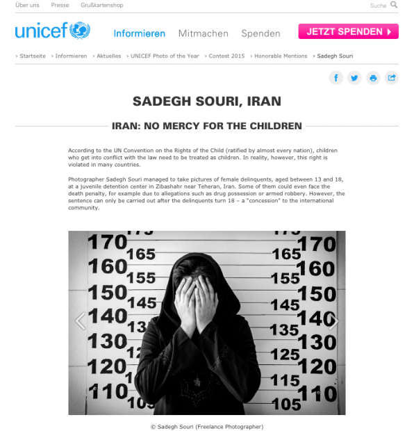 Trên trang web chính thức của Unicef, bức ảnh của Sadegh Souri vẫn còn trưng bày y nguyên