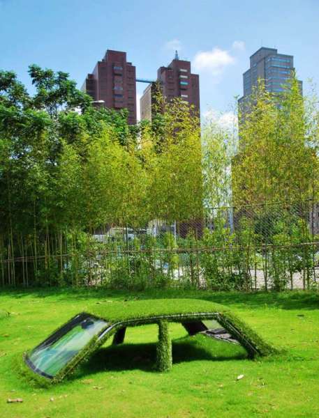 Chiếc xe được phủ đầy cỏ tại Đài Loan, Trung Quốc - Ảnh được chụp (hoặc chia sẻ) bởi Tao/Pixnet