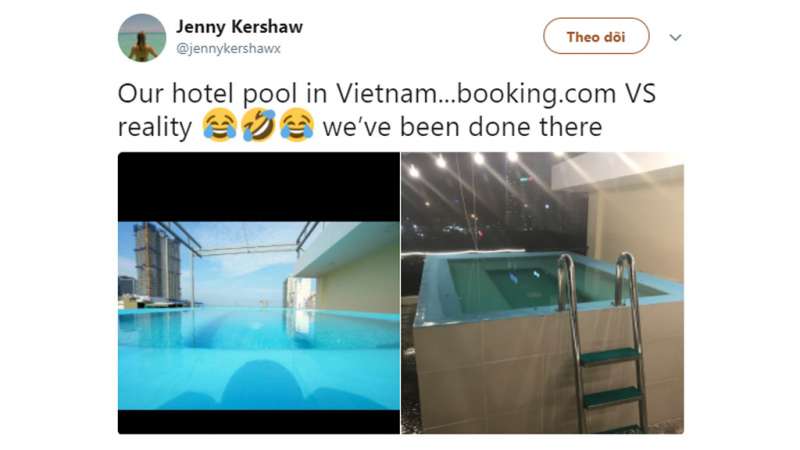 Được biết, 'nạn nhân' trong câu chuyện này là Jenny Kershaw đến từ thành phố Manchester, nước Anh. Cô cho biết rằng cô đã đặt một phòng khách sạn thông qua trang Booking.com, những tưởng đó sẽ là căn phòng với một hồ bơi lớn, thế nhưng khi đặt chân đến nơi thì những gì Jenny nhìn thấy đã khiến cô không khỏi bất ngờ và nhịn được cười. Theo đó, cái 'bể bơi' cô nhìn thấy thông qua ảnh chụp thực chất chỉ là một hồ tắm nhỏ mà thôi.