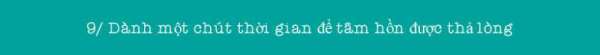 Cuộc sống có quá nhiều những bận rộn và lo toan, hãy dành ra ít phút mỗi ngày để tâm hồn được hoàn toàn thả lòng. Hít một hơi thật sâu sau đó thở ra, gạt bỏ mọi suy nghĩ có trong đầu, chỉ vậy thôi.