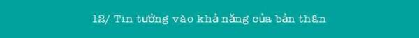 Niềm tin có sức mạnh rất lớn lao, tin vào người khác cũng như tin vào bản thân. Kể cả bạn có tiềm lực mà thiếu tự tin thì cũng không thể thành công được. Vậy nên, hãy lạc quan hơn và nhắc nhở bản thân rằng 'Mình có thể làm được!'.