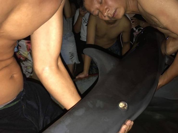 Nhóm bạn trẻ ở Đà Nẵng phát hiện và đưa chú cá heo mắc kẹt, bị thương vào nơi cấp cứu
