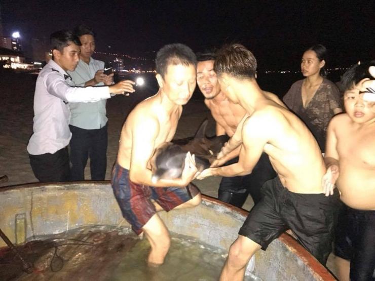 Nhóm bạn trẻ ở Đà Nẵng đã huy động để ứng cứu kịp thời cho chú cá heo