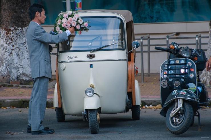 Những chiếc xe vespa cổ được xếp thẳng hàng