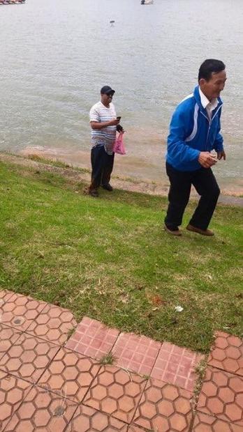Người đàn ông nước ngoài tốt bụng đã nhảy xuống hồ nước sâu khoảng 2 m cứu cháu bé. Ảnh: Internet