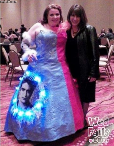 Chắc hẳn cô dâu chú rể muốn tiết kiệm vải để dành tiền tổ chức tiệc hoành tráng cho khách mời.