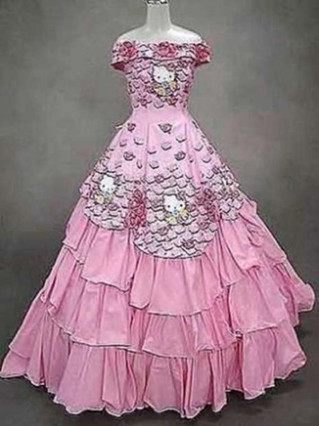 Cô dâu đích thị là tín đồ Hello Kitty.