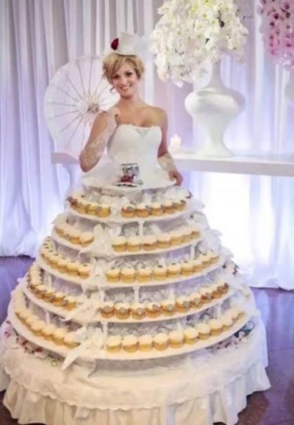 Chắc chắn khách mời rất yêu thích chiếc váy cưới làm từ bánh cupcake này.