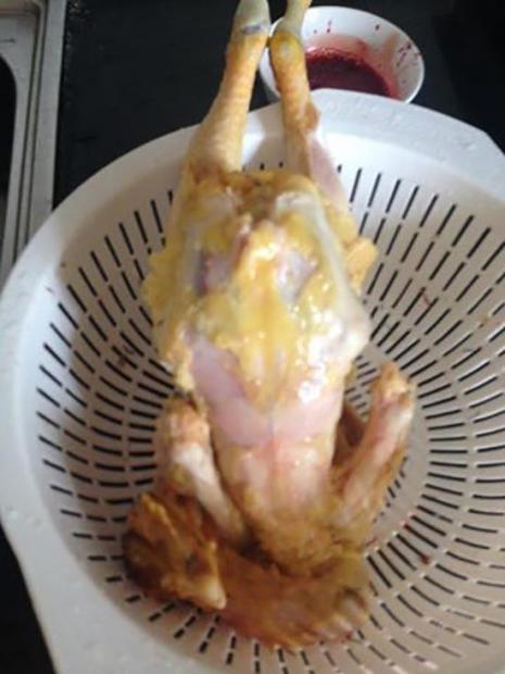 Hình ảnh con gà sau khi được vặt lông được chia sẻ trên mạng xã hội