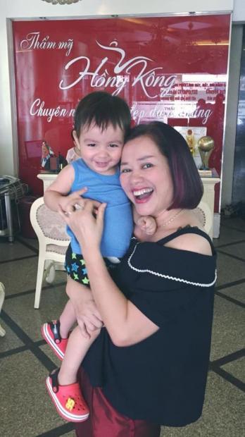 Chị Phượng tươi cười rạng rỡ bên cạnh cậu con trai 19 tháng tuổi.