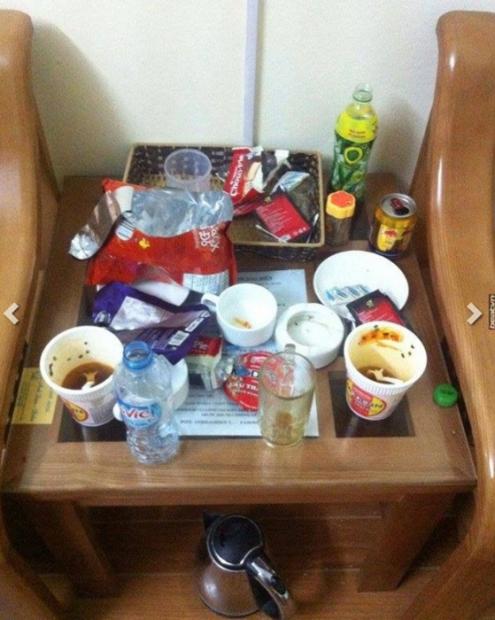 Bãi chiến trường ngổn ngang rác của cặp đôi để lại trong nhà nghỉ