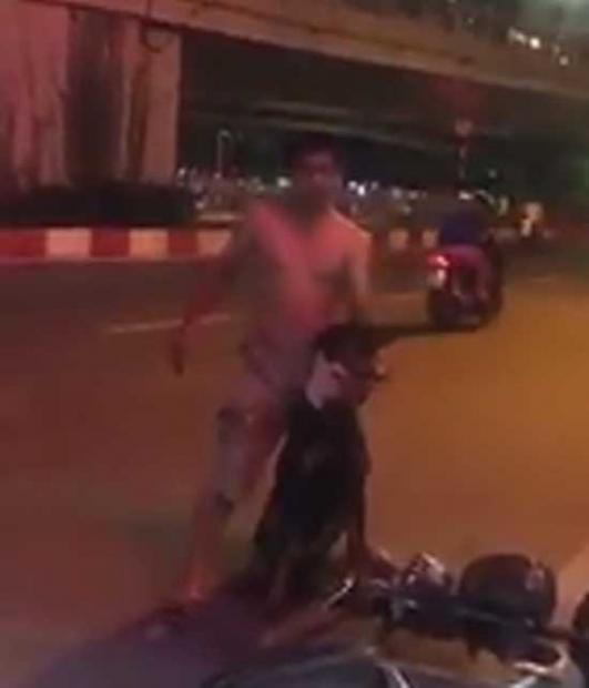 Tưởng thế là xong thì chưa đầy 5 phút sau, chủ chó ta cầm ngay phóng lợn ra đâm trúng cổ chó doberman của anh đi xe điện rồi chạy đi mất. Máu chảy xối xả, anh chủ khóc, cởi áo quấn quanh cổ chú chó doberman để cầm máu và cầu xin sự trợ giúp, nhìn rất thương tâm.