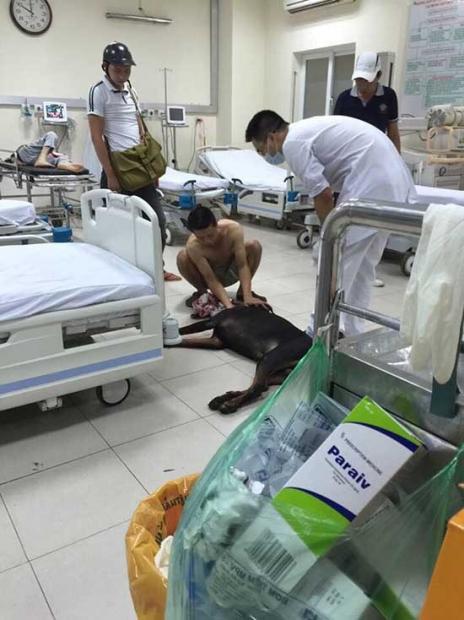 'Người ốm mê mệt đi truyền nước gặp cảnh tượng này thương quá. Cấp cứu cho con chó bị xiên vào cổ. Ông chủ cứ quỳ xuống xin bác sĩ cứu chó, còn rưng rưng nước mắt. Khổ thân quá! Chắc là cứu được', anh này cho biết.