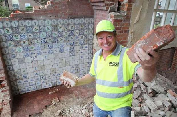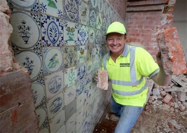 Sự việc thú vị này diễn ra tại Tây Nam nước Anh. Trong khi tháo dỡ ngôi nhà của nghệ thuật gia Arthur George Bell thuộc thời đại Victoria, người công nhân tháo dỡ đã phát hiện ra một bức tường đặc biệt. Bên trong bức tường là vô số viên gốm sứ được sản xuất từ thành phố Delft nổi tiếng của Hà Lan.