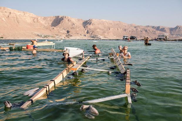 Chiếc áo choàng ngâm trong vùng biển chết. Hai năm sau người ta có thể thấy nó đã trở thành chiếc áo nạm muối phát sáng lấp lánh tuyệt đẹp.