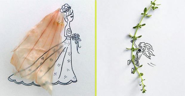 Cô sử dụng những đồ vật rất thông dụng từ đồ ăn cho đến văn phòng phẩm tìm thấy ở nơi làm việc hoặc trong nhà để tạo nên tác phẩm của riêng mình.