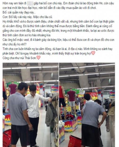 Hình ảnh hai cha con nhường nhau mua quần khiến dân tình cảm động, bảy tỏ suy nghĩ riêng của mình khi nghĩ đến gia đình.