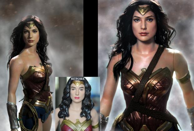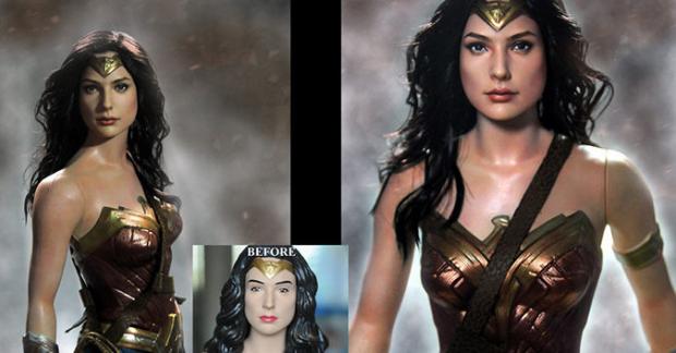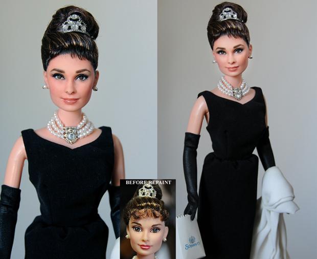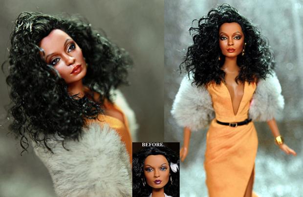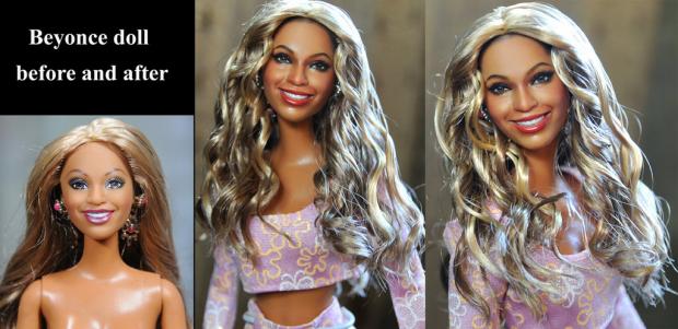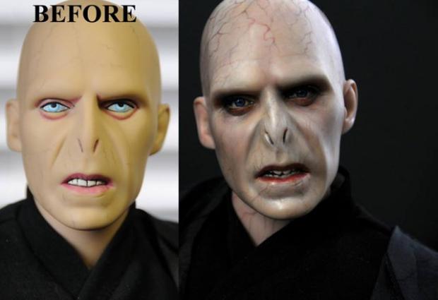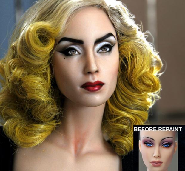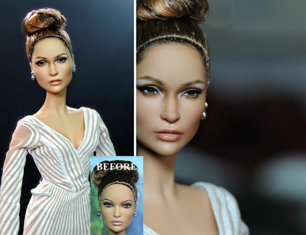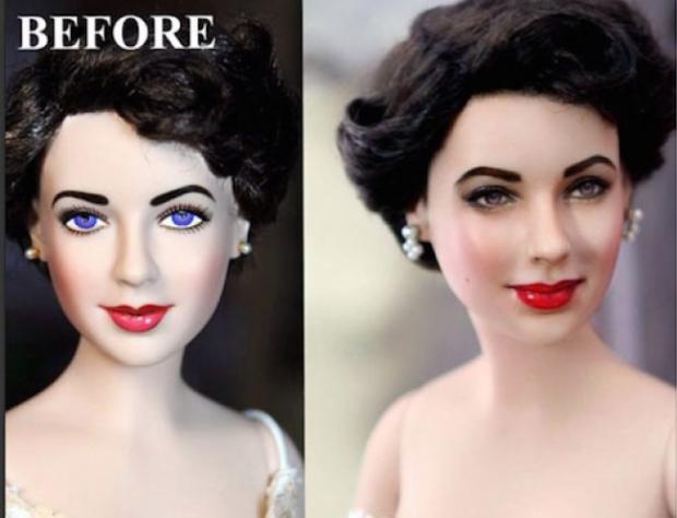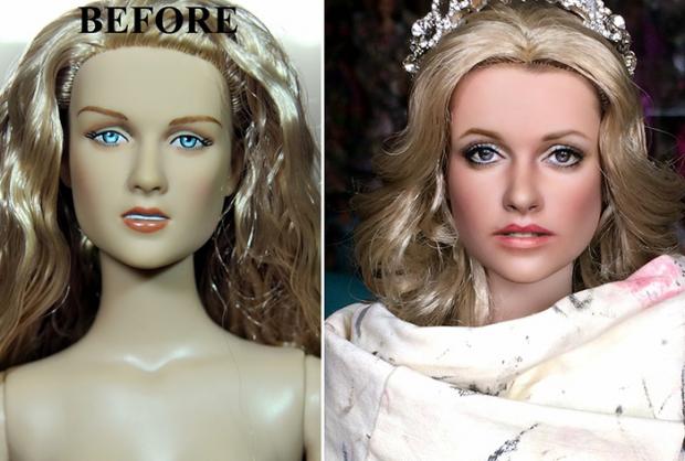 Ông còn có thể sửa lại quần áo và tóc của búp bê. Mỗi một con búp bê được hoàn thành phải mất tới 40 giờ. Những bức ảnh dưới đây là trước và sau khi trang điểm, trông tương phản một trời một vực phải không? Đến các ngôi sao sau khi nhìn thấy những búp bê này cũng không thể tin vào mắt mình được.