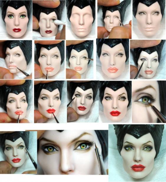 Trước tiên ông quyết định xoá lớp trang điểm và những nét vẽ trên khuôn mặt búp bê đi. Sau đó bắt đầu vẽ và tô màu trang điểm.
