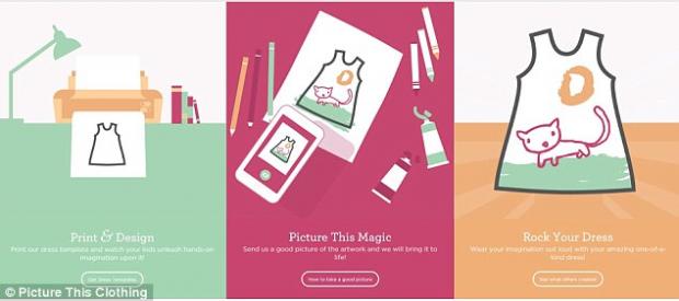 Trang web của cô có tên “Picture This”. Việc bạn cần làm khi vào trang web này là tải xuống một mẫu quần áo, sau đó đưa cho con bạn tự vẽ lên những hình ảnh mà bé muốn, tiếp theo là đăng tải lại lên trang web này và chờ đợi. Chỉ khoảng 2 tuần sau, bé con nhà bạn đã có một bộ trang phục như ý rồi!
