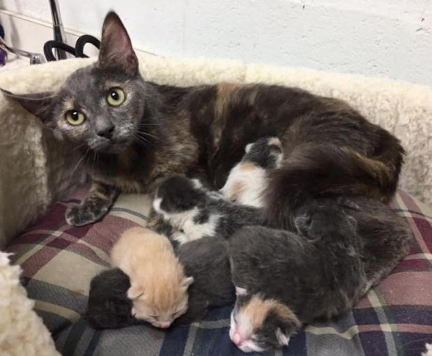 Mèo mẹ và các con của mình hiện đang được chăm sóc rất chu đáo trong viện cứu trợ động vật.