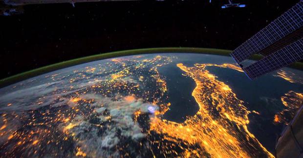 Tận dụng chùm ảnh chụp liên tiếp từ trạm vũ trụ quốc tế (ISS), nghệ sĩ David Peterson đã tái hiện lại một cách sống động cảnh tượng Trái Đất về đêm khi bay trên không trung.