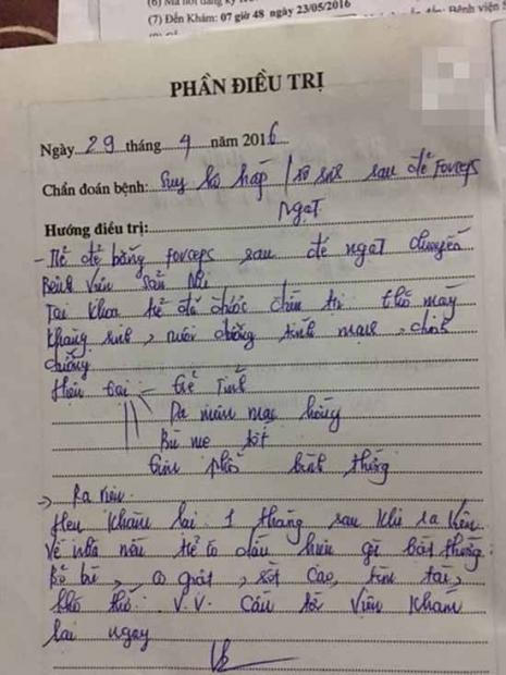 'Hơn 9h bác sỹ tên Trung mới đến bệnh viện và nói quá muộn để mổ và tiến hành đỡ đẻ cho tôi. Không có tiếng khóc, tôi thấy em bé trắng bệch. Người khâu cho tôi liên tục nhắc tôi là hít sâu thở đều, dù cảm nhận được sự chẳng lành nhưng quá kiệt sức tôi chỉ nhắm mắt cố thở sâu”.