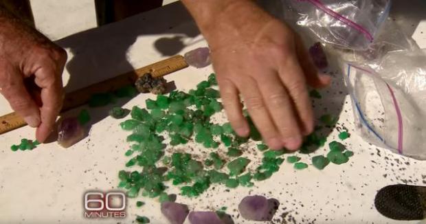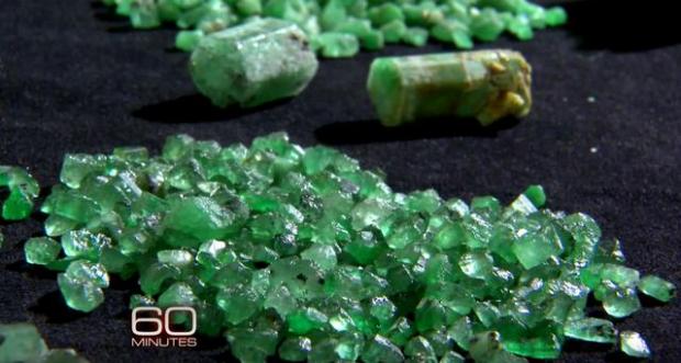 Đây là những gì ông đã tìm thấy. Chúng là những khối ngọc Lục Bảo. So sánh về mặt giá trị, loại ngọc này quý giá ngang hàng với Kim Cương.