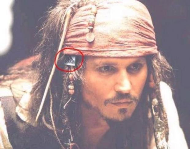 Dường như thuyển trưởng Jack Sparrow rất yêu thích nhãn hàng Adidas! Không chắc rằng liệu Adidas có phải trả tiền cho việc quảng bá thương hiệu hay không.