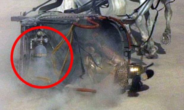 Một cảnh quay từ trận chiến Carthage trong phim Võ sĩ giác đấu có xuất hiện một bình gas được gắn trên chiếc xe cổ. Làm thế nào mà điều này lại xảy ra vào năm 180 sau công nguyên?