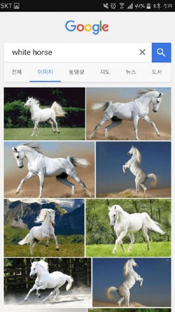 Nếu bạn tìm từ khóa 'White Horse' (ngựa trắng) bằng tiếng Anh, ở các nước khác thì hình ảnh hiện lên sẽ thế này.