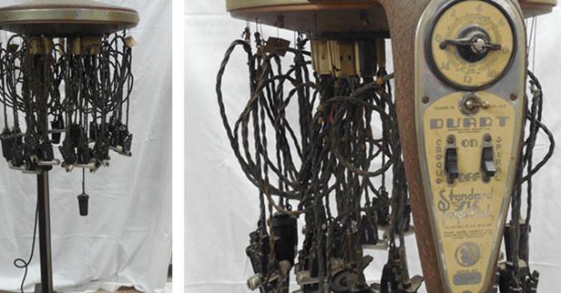 Hãy chú ý, thiết bị này có một khung tròn gắn trên thân với nhiều dây rợ. Có một thứ gì đó gắn ở đầu dây và các đoạn dây có vẻ bằng nhau. Thiết bị này cũng cần cắm điện để hoạt động.