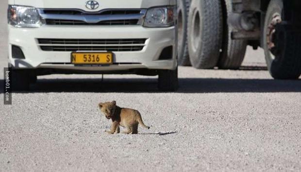 Mọi người đều bối rối trước hành động của sư tử con. “Chúa tể sơn lâm tương lai” ra oai gào thét trước những chiếc xe, bộ dạng ngốc nghếch dễ thương của nó lập tức khiến trái tim mọi người tan chảy.