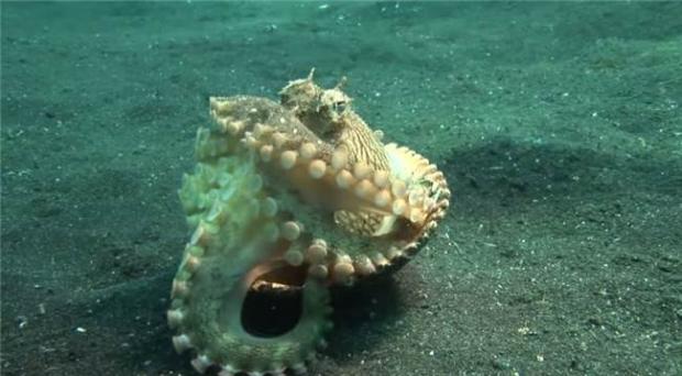 Thật lợi hại! Rõ ràng bạch tuộc có thể ngụy trang thành một con sò biển lớn.