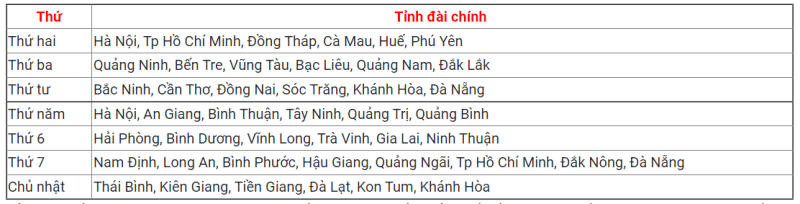 Trên đây là bảng cập nhật các đài chính được phân chia, mỗi ngày lại có một đài chính khác nhau với đủ các đài ở ba miền. Xổ số của các đài chính thu hút số lượng lớn người mua, nên tỷ lệ trúng thưởng của bạn cũng sẽ cao hơn.