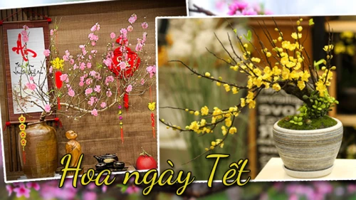 Những loài hoa được yêu thích nhất bao gồm hoa mai vàng (Hoa mai) ở miền Nam, hoa đào (Hoa đào) ở miền Bắc. Đó đều là những đồ trang trí ngày Tết tuyệt vời. Những bông hoa này tượng trưng cho hạnh phúc, may mắn và giàu có. Hoa mai vàng, hoa đào nhân tạo được ưa chuộng vì hoa tươi được khoảng một tuần và giá thành cành tươi, cây có hoa khá cao. Những cành có hoa thì cắm lọ cao trên bàn thờ gia tiên, còn những cây có đầy hoa mai, hoa đào thì cắm ở phòng khách hoặc ngoài nhà. Cành và cây thường được trang trí bằng dây trang trí và lì xì …