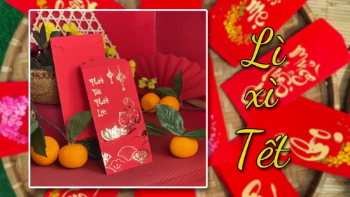 Lì xì Tết (Bao lì xì, Bao lì xì) – đồ trang trí Tết không thể thiếu trong dịp Tết cổ truyền. Không chỉ là nhưng phong bao đỏ mà người lớn tặng cho trẻ em mà còn được dùng để trang trí cây mai vàng, mai đào, cây quất. Treo những đường túi màu đỏ xung quanh nhà là một cách tuyệt vời để làm cho ngôi nhà trở nên tươi mới hơn. Dù túi đỏ hiện đại được thiết kế với nhiều hoa văn và màu sắc đa dạng nhưng màu đỏ truyền thống vẫn được yêu thích hơn cả.