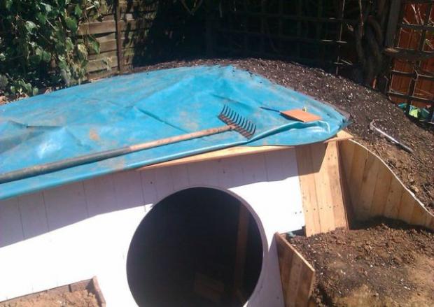 Ashley đã tìm rất nhiều vật liệu không thấm nước để đặt một nền tảng tốt cho chiếc hang Hobbit.