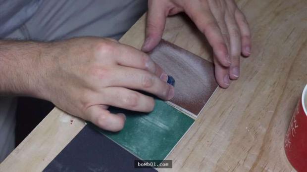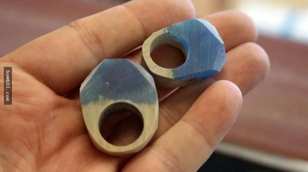 ▼Không chỉ dừng lại ở đó, Peter dùng đủ loại giấy đánh bóng để mài nhẵn mặt ngoài chiếc nhẫn, khiến nó trở nên sáng bóng.